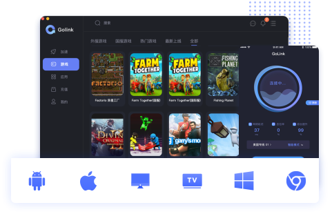GoLink助力海外华人高速访问国内网络,快速开启国内各直播平台,解决国内 视频、音乐卡顿问题;更能加速海量国服游戏,超低延迟稳定不掉线,畅享国内网络!