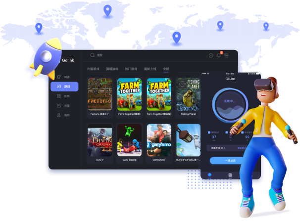 身在海外玩国服游戏延迟高经常掉线?使用GoLink加速器,一键加速国服游戏,降低海外延迟,极速稳定不丢包,完美支持加速Windows、iOS、Android、macOS等多平台使用,加速王者荣耀、和平精英、LOL英雄联盟 、魔兽世界、原神、永劫无间、剑网3、CS:GO等国服游戏,同时支持YY语音、OBS、直播姬、QQ音乐、网易云音乐、Bilibili、爱奇艺、优酷等软件。